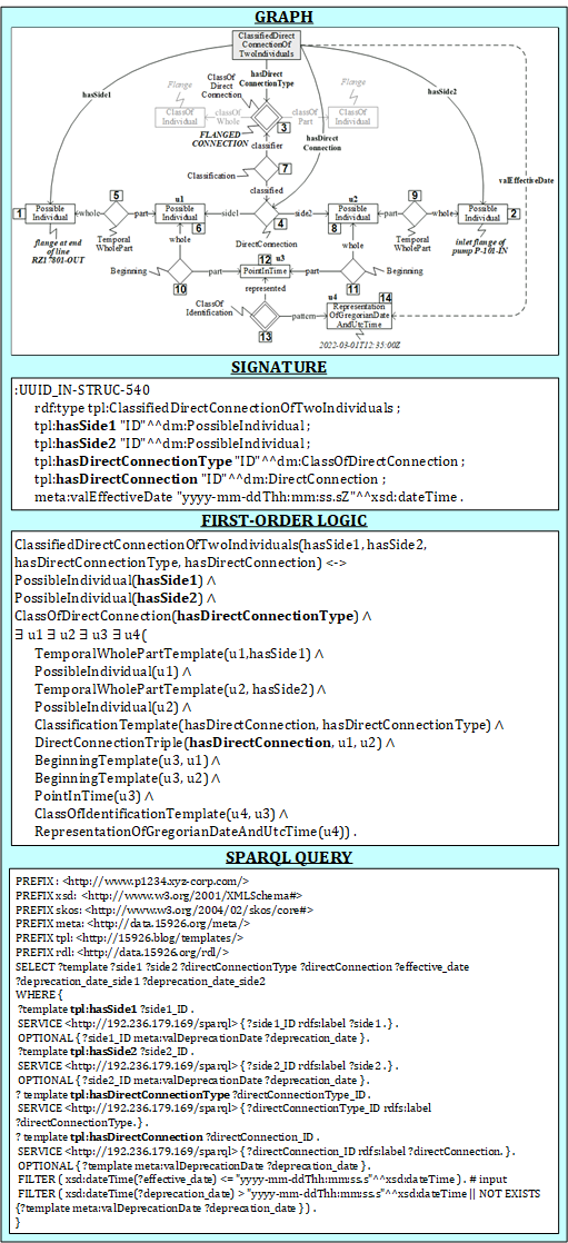 - a graph of ISO 15926-2 entity types and, in cases of specialized templates, specializations thereof in ISO 15926-4 or extensions thereof ;
