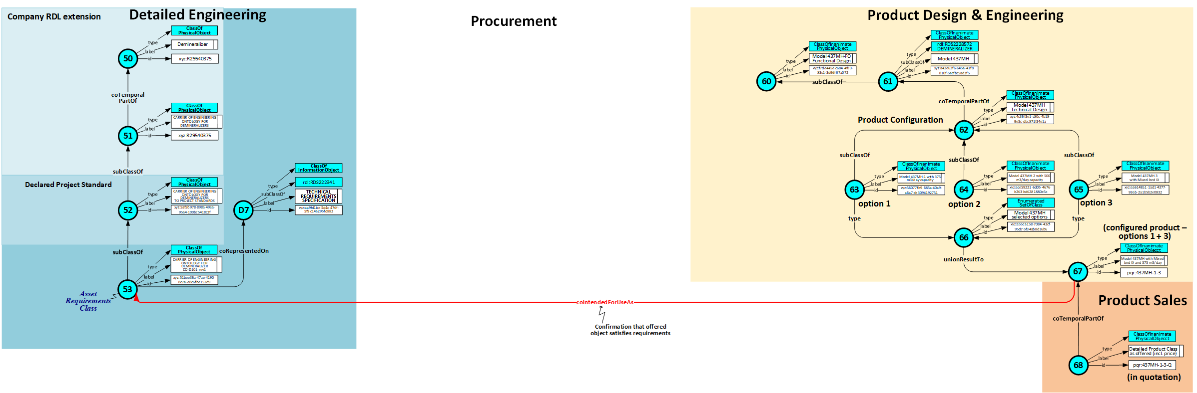 - The Asset Requirements Class [53] is 'involved by reference' in a Procurement Activity [56] , together with the 'Detailed product class, as offered (incl. price)' [68]