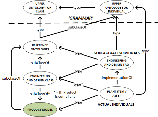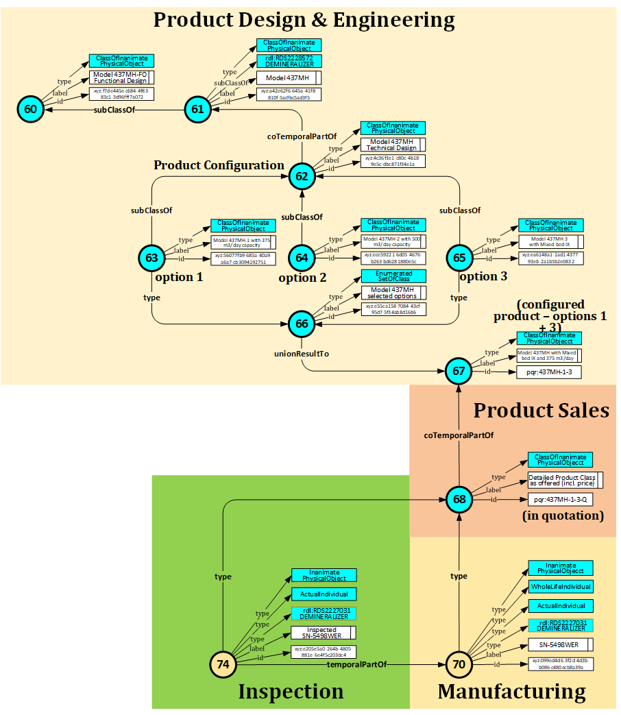 The manufacturer has class models for his products. Similar to the Requirements Class the Product Model is a specialization of the Reference Ontology, be it with other information content.