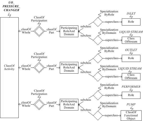 In ISO 15926 the activity and all participating physical objects, and the role in which they participate,are defined separately and explicitly.